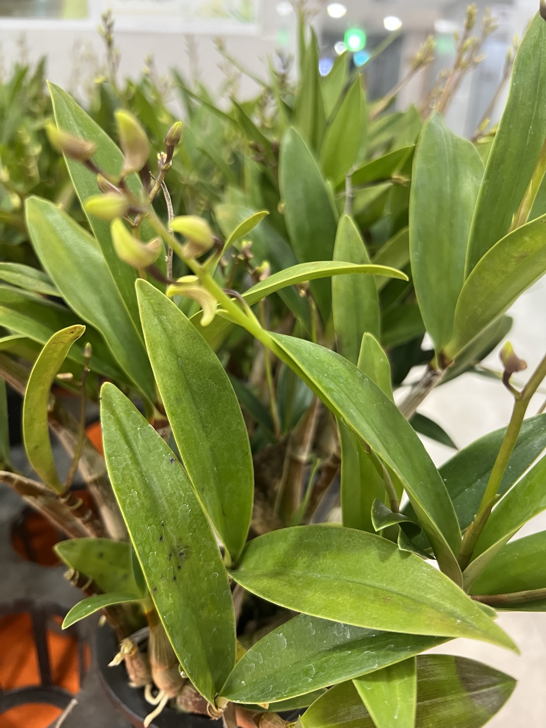 긴기아난은 대나무처럼 마디가 있는 가늘고 긴 줄기를 주축으로 성장하는 다년생 착생란입니다. 잎은 가죽질의 두꺼운 구조를 가지며 길이 5-10cm, 너비 1-2cm 정도의 피침형으로 배열됩니다. 이 같은 잎 구조는 건조 환경에서의 수분 증발을 최소화하기 위한 진화적 적응으로 해석됩니다.