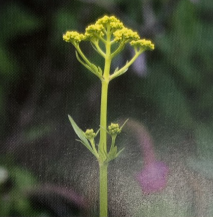 - 꽃: 지름 3~5mm의 작은 노란색 꽃들이 산형(우산 모양)으로 모여 핍니다.