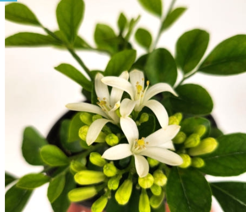 오렌지자스민(Orange Jasmine, 학명: Murraya paniculata)은 은은한 향기와 작은 흰색 꽃이 매력적인 식물로, 주로 아열대 및 열대 지역에서 자라는 관목입니다. 이 식물은 실내와 실외 모두에서 키우기 적합하며, 공기 정화 효과가 뛰어나 실내 환경 개선에도 도움이 됩니다.